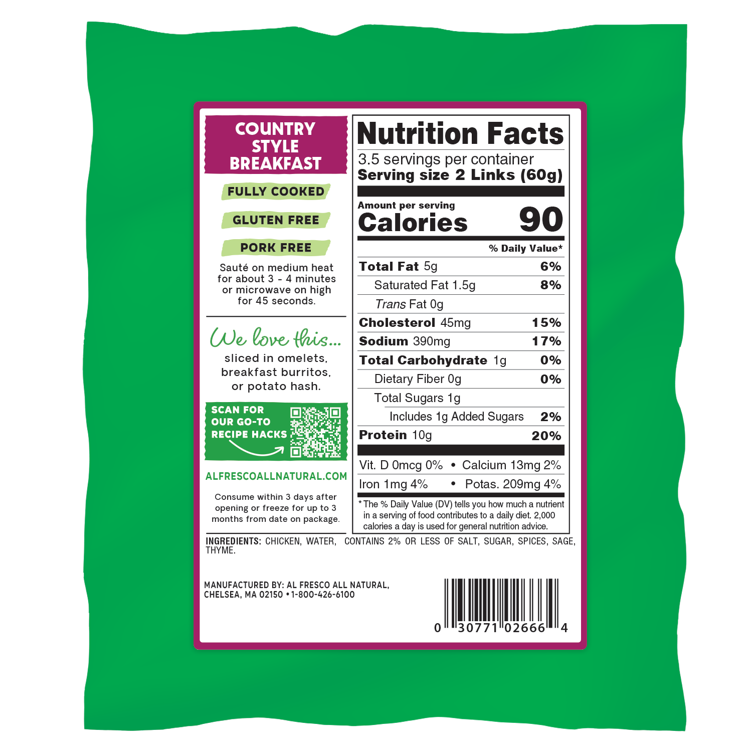 CHICKEN, WATER, CONTAINS 2% OR LESS OF SALT, SUGAR, SPICES, SAGE, THYME.